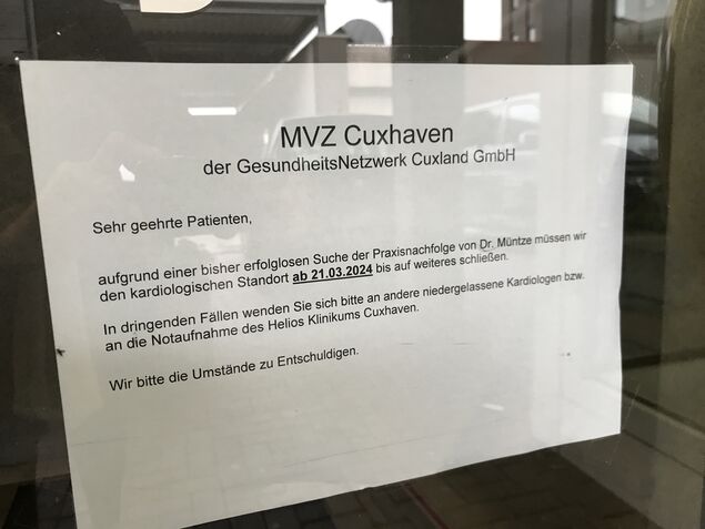 Wegen der bisher erfolglosen Suche bleibe der kardiologische Standort bis auf weiteres geschlossen, hieß es dieser Tage auf dem Anrufbeantworter der Praxis, die Dr. Andreas Müntze in den vergangenen Jahren nicht mehr selbstständig, sondern als angestellter Arzt geführt hatte. Seit dem Verkauf an den Helios-Konzern gehörte die Praxis als MVZ (Medizinisches Versorgungszentrum) Cuxhaven zum GesundheitsNetzwerk Cuxland GmbH, Bestandteil der Helios-Gruppe.