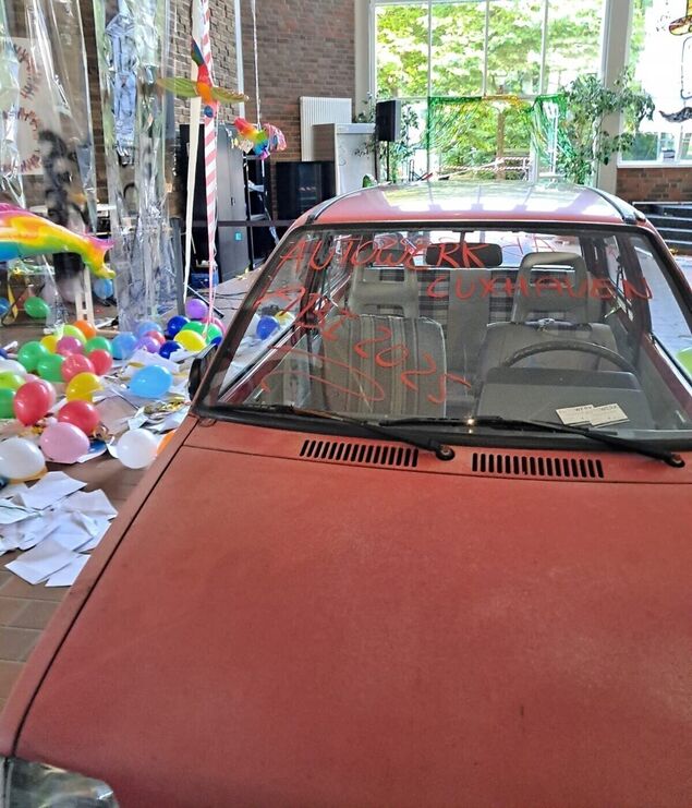 Die Abiturientinnen und Abiturienten zweier Cuxhavener Gymnasien feiern ihren Schulabschluss ausgelassen mit Mottowoche, Abi-Streich und einer Abi-Band. Sogar ein Auto landet im Schulgebäude.