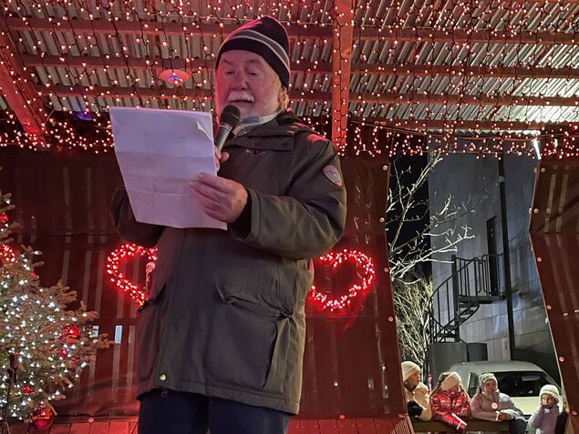 Dicht gedrängt stehen die Kinder vor der Bühne des Weihnachtsmarktes von Hafnarfjördur. Der Bürgermeister der Cuxhavener Partnerstadt, Valdimar Vidisson,Botschafterin Clarissa Duvigneau und Konsul Wolf Dick aus Cuxhaven stehen auf der Bühne.