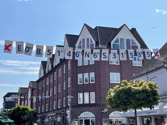 Die Agentur für Wirtschaftsförderung war überrascht von der Anfrage unseres Medienhauses, hatte den Fehler offensichtlich noch nicht bemerkt. Hilke von der Reith vom Standortmarketing sicherte aber zu, dass dies schnellstmöglich korrigiert wird. Und auch für den Sonntag, 15. Juni, wenn an der Einmündung Grüner Weg/Schillerstraße ein Pendant aufgehängt wird, soll darauf peinlichst genau darauf geachtet werden, dass bei der dortigen Wimpelkette folgende Koordinaten in der richtigen Reihenfolge aufgehängt werden: 53°52'12.6''N 8°42'00.2''E.