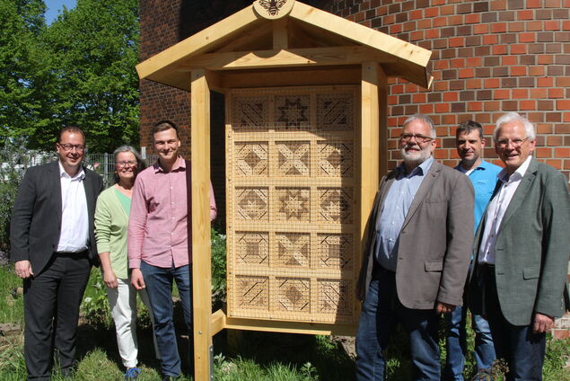 Oft sei beim Thema Insektenschutz die Honigbiene im Fokus, erklärt Kliebe, der selber Imker ist. Noch viel bedeutsamer für den Artenschutz aber seien die zahlreichen eher unscheinbar daherkommenden Wildbienenarten. Als sich die Gelegenheit bot, eine sehr hochwertige Anlage zum reduzierten Preis zu erwerben, war der Förderantrag an die Stadtsparkasse Cuxhaven schnell geschrieben. Dank der 3000-Euro-Zuwendung konnte das Hotel beschafft und aufgebaut werden.