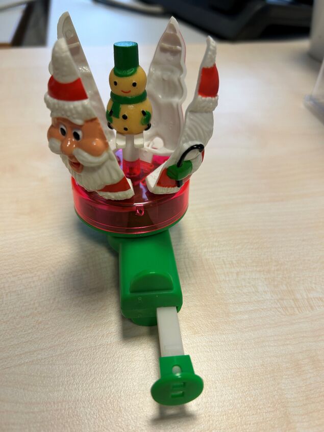 Da ist auch das Weihnachtsspielzeug mit einem Weihnachtsmann, der sich auf Knopfdruck mit rasanter Geschwindigkeit zu drehen beginnt und wie eine Blüte öffnet, um den Blick auf einen kleinen Schneemann freizugeben. Dabei erzeugte das Ding auch noch weihnachtliche Geräusche. Leider ist dieses wunderbar nutzlose Spielzeug aus chinesischer Fertigung nicht mehr voll funktionstüchtig. Deshalb weiß ich nicht mehr, welche Melodie abgespielt wird. Ich habe das Stück von unserem ehemaligen NEZ-Geschäftsführer Jürgen Harms, der leider auch schon viele Jahre nicht mehr lebt. Er hatte an solchen kleinen Gags immer viel Freude. Von ihm habe ich auch eine nicht angebrochene Schachtel Roth-Händle-Zigaretten, ich glaube, es war seine letzte.