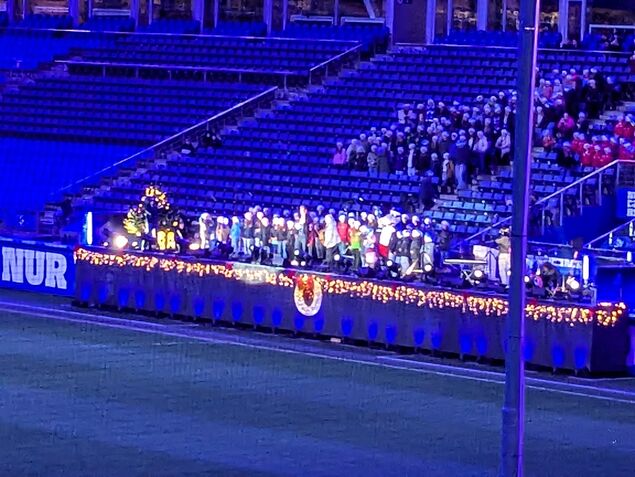 Ein weiteres Highlight war der Auftritt von Luis Bruhn, Teilnehmer der aktuellen Staffel von The Voice of Germany. Auch hier durfte natürlich mitgesungen werden. Der Hamburger Seemannschor präsentierte mit Akkordeonbegleitung traditionelle Weihnachtslieder und die Vereins-Band "Abschlach!" ließ abschließend die vielen HSV-Fans im Stadion jubeln. Dabei wurden die (natürlich) blau-weißen Weihnachtsmützen und Fanschals durch die Luft geschwungen.