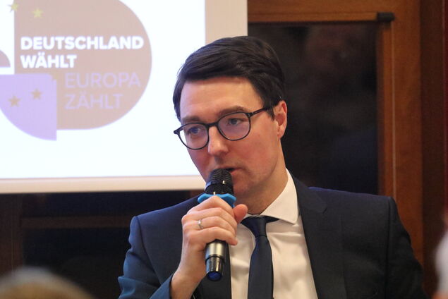 Inwieweit Europa im Bundestagswahlkampf eine Rolle spiele, wollte Moderator Ulrich Rohde von seinen Gesprächspartnern wissen. "Mehr als vielleicht auf den ersten Blick hin ersichtlich", kam es (sinngemäß) aus allen Ecken zurück. Während der CDU-Kandidat unter dem Stichwort Wirtschaftspolitik auf die Bedeutung des europäischen Binnenmarkts einging, bezogen sich die Bewerber von SPD und Grünen in ihren Statements auf die Bundestagsdebatte von vor zwei Wochen. "Jahrelang haben wir Europa als selbstverständlich wahrgenommen", so Christopher Jesse. "Was es bedeutet, Grenzen zu schließen, ist vielen nicht bewusst." Was der Kanzlerkandidat der Union "durch den Bundestag kriegen wollte", so fügte der Grünen-Kandidat kurz darauf hinzu, habe nichts mit dem europäischen Gedanken zu tun gehabt.