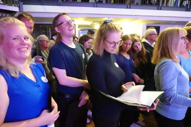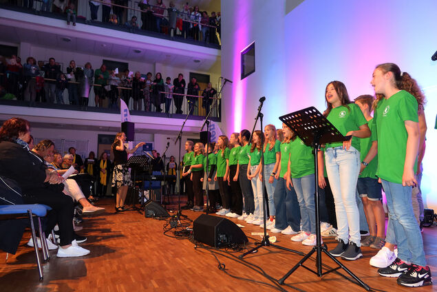 In diesem Jahr erklangen unter anderem "Die Hoffnung lebt zuerst", "Die Gedanken sind frei", "Tage wie diese", "Oh Happy Day", "Mensch", "Freiheit" und das israelische Volkslied "Hevenu shalom alechem" ("Wir wollen Frieden für alle"), das auf Hebräisch, Deutsch, Englisch und Französisch angestimmt wurde. Chorleiterin Britta Quaiser nahm ihr Publikum an die Hand und führte auf charmante Weise durchs Programm.