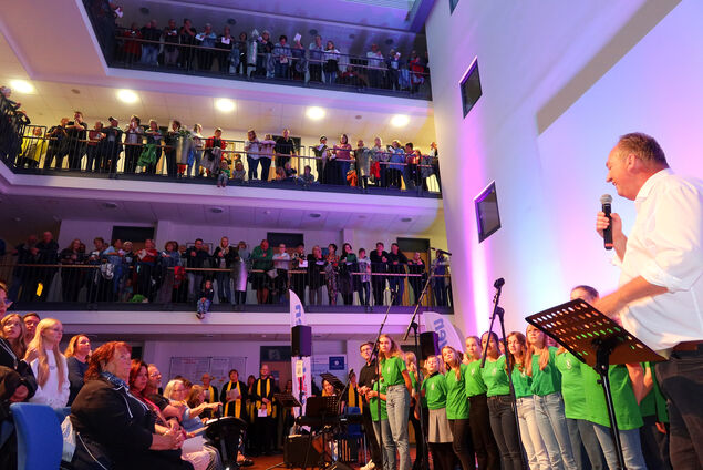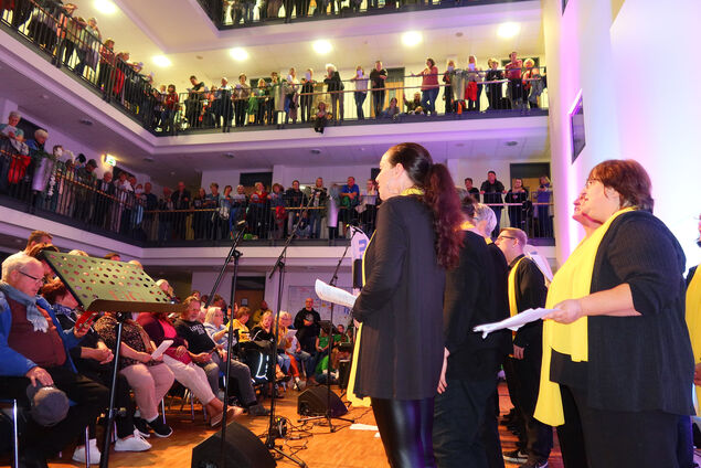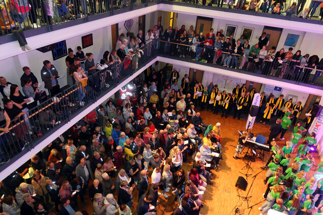 Gemeinsam mit den Chören "Faith, Hope and Love", "LiG Harmonics", "Sunset Chords", "Stimmstärke 10" und "Sohl'nborger Büttpedder" erhellten ausgewählte Lieder der Zuversicht und der Einheit als Zeichen des Friedens und der Hoffnung den Raum.