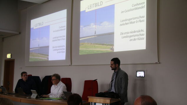 Daniel Kauder, der schon einmal im Jahr 2021 die Entwürfe für eine Bewerbung Cuxhavens für die Schau 2026 mit entwickelt hatte, stellte jetzt die Weiterentwicklung der Planungen für das Projekt "Landesgartenschau zwischen Meer und Fluss 2030" vor. "Die Landesgartenschau ist eine riesige Chance für die Stadt Cuxhaven und für den Tourismus", erklärte der Stadtplaner und beeindruckte mit gut durchdachten Konzepten, die für die "Biosphärenstadt Cuxhaven" zukunftsweisend sein könnten.