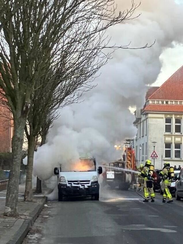 Ein Transporter ist auf offener Straße in Cuxhaven in Brand geraten. Die Feuerwehr und die Polizei wurden am Dienstag (20. Januar 2026) gegen 8.50 Uhr in die Hermann-Allmers-Straße gerufen.
