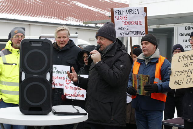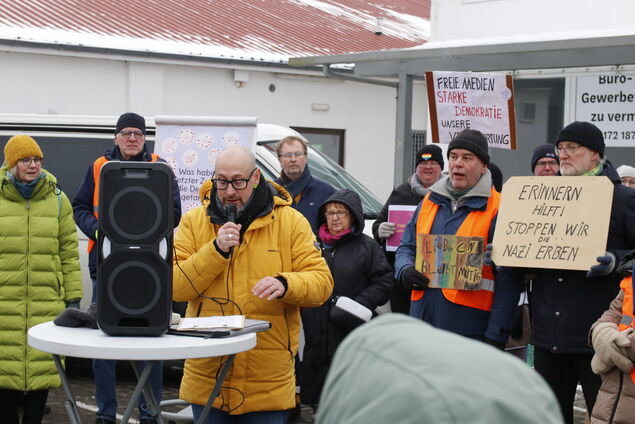 Für das örtliche Bündnis für Respekt und Menschenwürde sprach sich Frank Struß dafür aus, Einschüchterungsversuche - auch und gerade gegen Journalistinnen und Journalisten - klar zu benennen. "Wenn wir zulassen, dass Drohungen und Hetze den öffentlichen Diskurs bestimmen, dann müssen wir uns ernsthaft Sorgen um unsere Demokratie machen", sagte Struß. Im Namen der Kundgebungsteilnehmer äußerte er sein Unverständnis darüber, dass der Rinderzucht- und Besamungsverein einen Redner, "der unsere demokratische Ordnung verächtlich macht", überhaupt eingeladen habe.