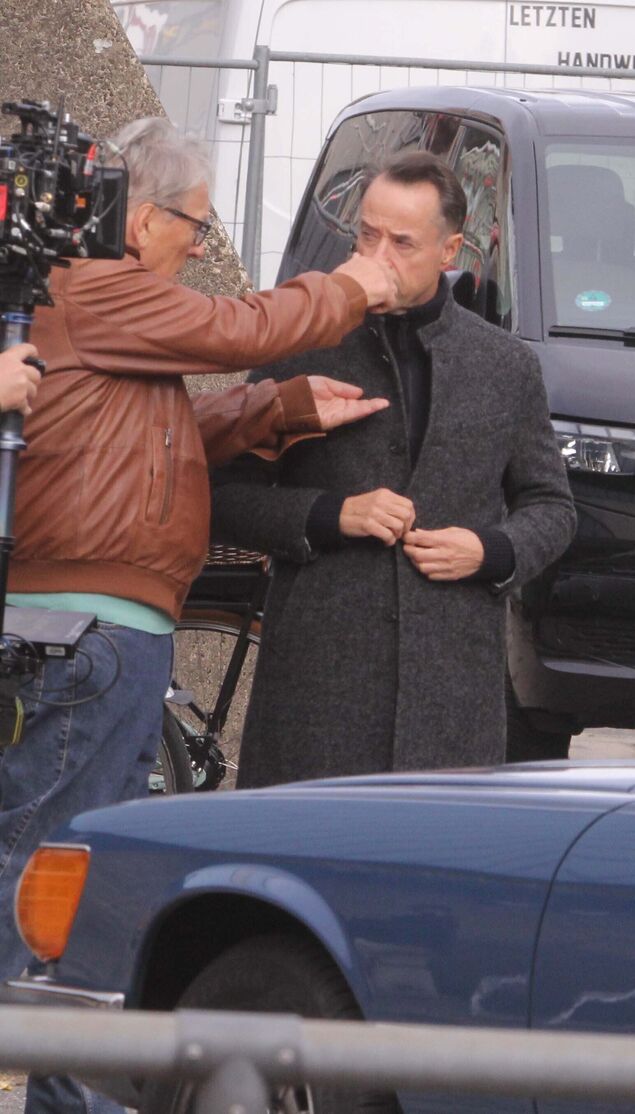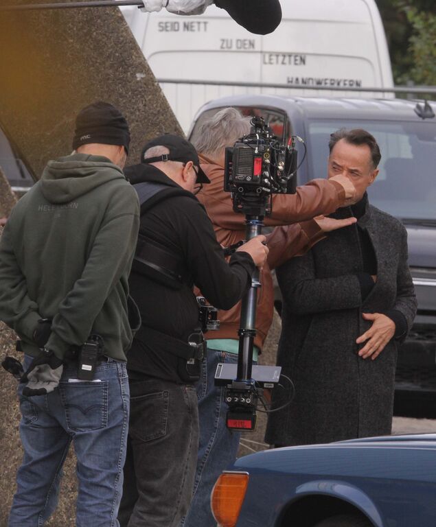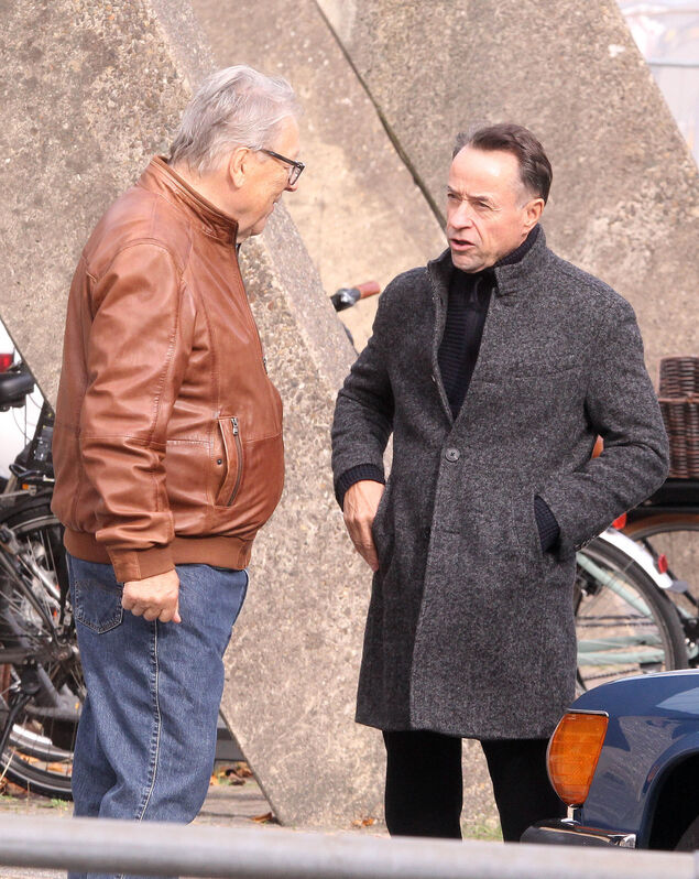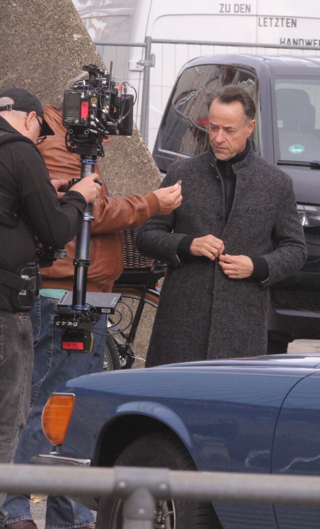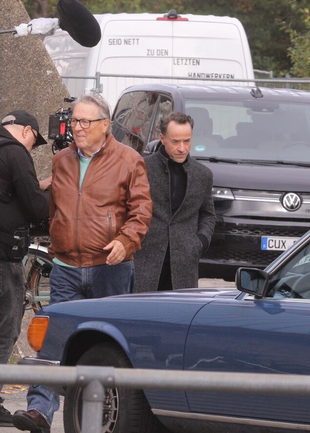 Aufgeregt steht eine Anwohnerin an der Schulstraße: "Den kenn' ich doch. Das ist doch der Schauspieler aus dem Tatort. Jan Josef Liefers." Tatsächlich steigt der TV-Star an diesem Mittwoch (15. Oktober 2025) aus einem schwarzen Van und steht zusammen mit Kollege Hansjürgen Hürrig ("Polizeiruf 110", "Bella Block") vor der Kamera. Seit Montag (13. Oktober 2025) produziert die Network Movie Filmproduktion in Cuxhaven Teile eines neuen Films im Auftrag des Zweiten Deutschen Fernsehen (ZDF).