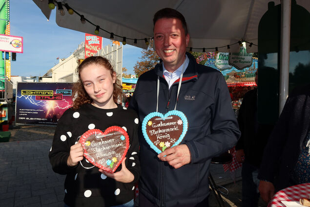 Bürgermeister Marc Gerdes, der dem drohenden Schwindel lieber aus dem Weg ging, überließ die Eröffnungsfahrt seiner 13-jährigen Tochter Anna. Für "kirchlichen Beistand" sorgte Hannes (9), Enkel von Cornelia Uppendahl, Kirchenvorstand Martinskirche. Damit gaben sie den Startschuss für ein Fest voller Mut, Freude und gemeinsamer Erlebnisse.