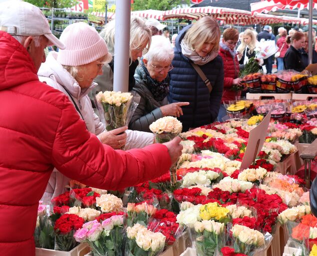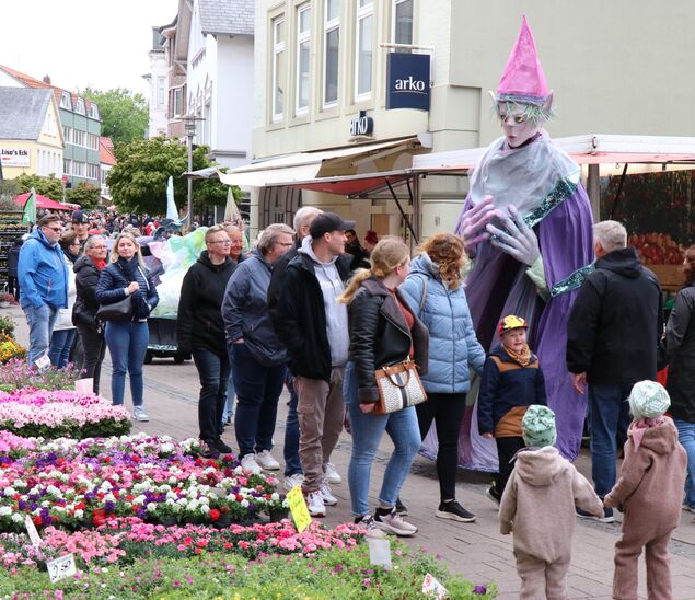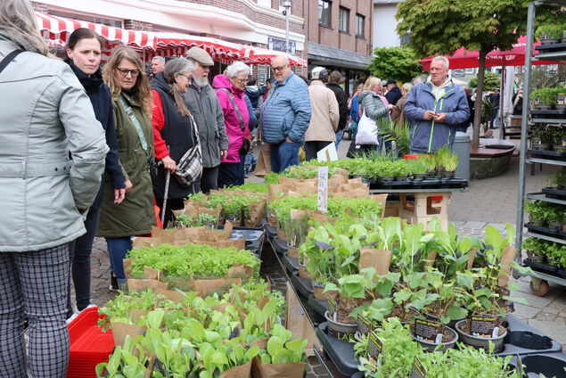 Die Stadt war so voll wie schon lange nicht mehr. Tausende Menschen schoben sich durch die Fußgängerzone, bepackt mit Tüten voll Blumen-, Kräuter- und Gemüsetöpfchen. Viele ließen sich treiben, andere wiederum kamen ganz gezielt. So wie Agnes Meyerhoff aus Midlum, die Storchschnabel, Gerbera und französischen Estragon in ihre mitgebrachte Transportkarre packte. "Damit werde ich meinen Garten verschönern", sagte die Rentnerin.
