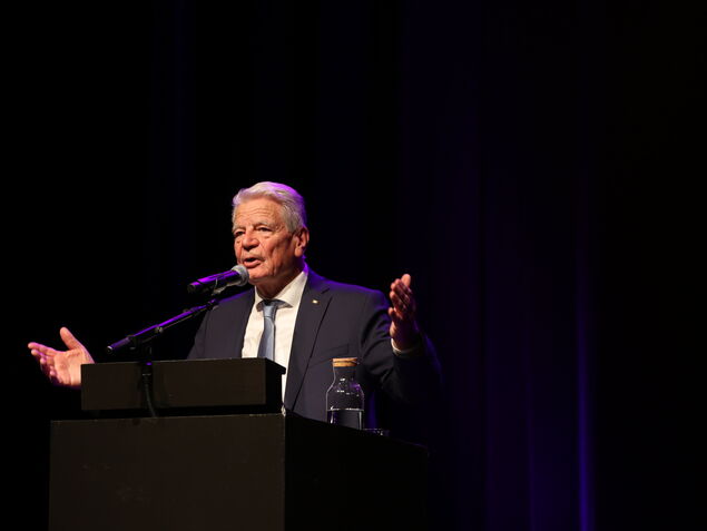 Wobei: Eine Lesung war es eigentlich nicht, was Gauck auf der Theaterbühne vollführte, es war ein freier Vortrag über gut zwei Stunden, in denen der körperlich wie geistig überaus vitale Mann seinem Publikum den Ernst der Lage schilderte, aber auch Wege aufzeigte. "Wir dürfen denen, die unsere Werte verachten, nicht unsere Angst schenken", sagte Gauck. "Das Schicksal ist nicht unabwendbar. Handeln hilft."