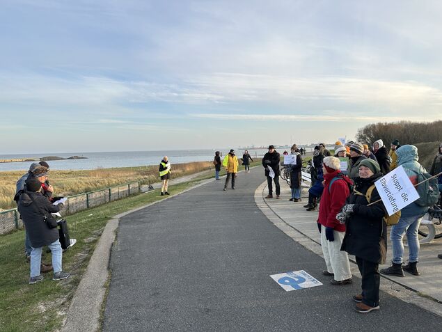 Mit den Herausforderungen eines maritimen Standorts kam die Abgeordnete dann an der Kugelbake hautnah zusammen, wo sie als Gast an der Mahnwache gegen die Elbvertiefung teilnahm, um so ein starkes Zeichen für Umweltschutz und eine nachhaltige Entwicklung an der Nordseeküste zu setzen.