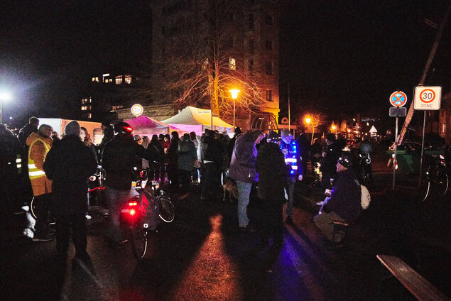 "Es war toll zu sehen, wie viele Menschen mitgemacht haben. Mit der Resonanz sind wir auf jeden Fall sehr zufrieden", zog Gunnar Wegener als einer der Initiatoren Bilanz. Lichterketten-Teilnehmerinnen und -Teilnehmer befanden sich zu diesem Zeitpunkt bereits in der Prinzessinnentrift. Im Rahmen eines zwanglosen "Get-togethers" konnte man sich dort mit Bratwurst oder einem von den "Omas gegen Rechts" kredenzten Apfelpunsch stärken: Ein Hauch von Weihnachtsmarkt-Atmosphäre zum Ausklang der Veranstaltung.