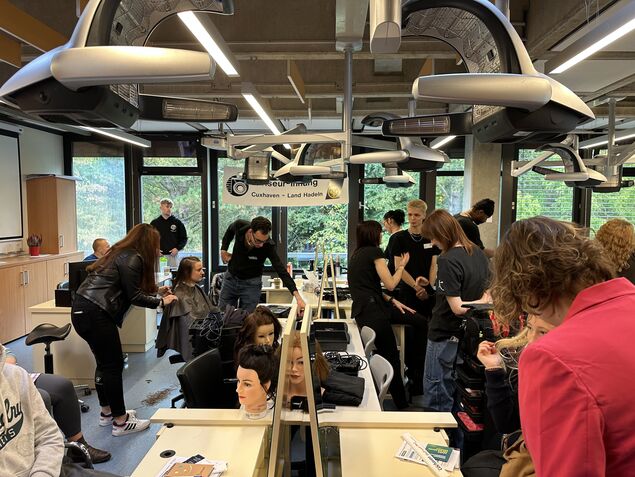 Die Branchen sind ohne thematische Bündelung auf alle Bereiche der BBS verteilt, was den Rundgang in keinem Moment langweilig macht. Medizinische Berufe, Handwerk, Gestaltung, Erziehung und Bildung, Pflege, Berufe im Hafen oder in der Kreuzfahrtindustrie, Tourismus, Verwaltung, Hotellerie und Gastronomie, Handel oder Fertigung sind nur einige Beispiele. In den Werkstätten macht unter anderem der Technologie- und Ausbildungscampus Cuxhaven von sich reden, bei dem sich Jugendliche - wie später in der echten Ausbildung - mithilfe ausgeklügelter digitaler Systeme täuschend echt den Umgang mit dem Schweißgerät üben können.