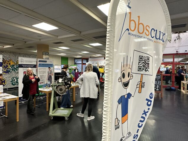 Die Planung und Vorbereitung der Messe "Flagge zeigen" nehme inzwischen das ganze Jahr ein. Das Gemeinschaftsprojekt der Schule und ihres Fördervereins sowie der Industrie- und Handelskammer Stade für den Elbe-Weser-Raum, der Kreishandwerkerschaft Elbe-Weser und des Unternehmensverbands Cuxhaven Elbe-Weser-Dreieck e.V. bietet für Jugendliche zahlreicher allgemeinbildender Schulen aus Stadt und Kreis Cuxhaven sowie die Schülerschaft der Berufsbildenden Schulen jedwede Möglichkeit, sich über Wunschberufe oder -studiengänge zu informieren.