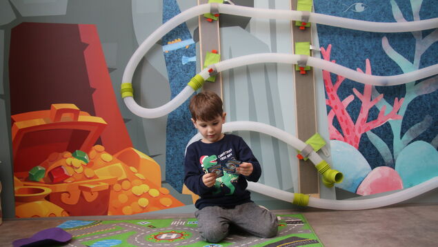Die gesamte Praxis ist nach dem Prinzip eines Kreislaufs gestaltet. Patienten gelangen vom Empfang in den Wartebereich und werden von dort in die verschiedenen Untersuchungsräume geführt. "Wir haben jeden Schritt im Patientenfluss genau geplant, um Wartezeiten zu minimieren und Abläufe effizient zu gestalten", erklärt Dr. Heuvels. Von klassischen Sehtests über Netzhautfotografie bis hin zu hochmodernen Schichtaufnahmen bietet die Praxis eine breite Palette an Diagnostikverfahren. Ein besonderer Schwerpunkt liegt dabei auf der Kinderaugenheilkunde. Für die kleinen Patienten gibt es einen eigenen Bereich mit einer liebevoll gestalteten "Schatzkiste" als Spielbereich.