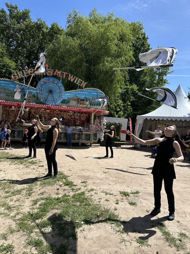 Am Berenscher Weg legte der Umzug eine Kurve ein, um den Schulhof danach von der anderen Seite aus zu erreichen. Nach der Ankunft dort wollten bei herrlichem Wetter die meisten noch nicht nach Hause. Es gab weitere Vorführungen und die Türen der Aula öffneten sich abermals für die Besichtigung der Ausstellung "Zeitreise Sahlenburg".