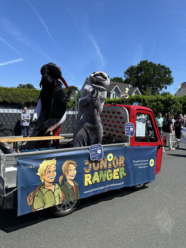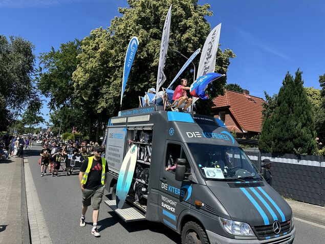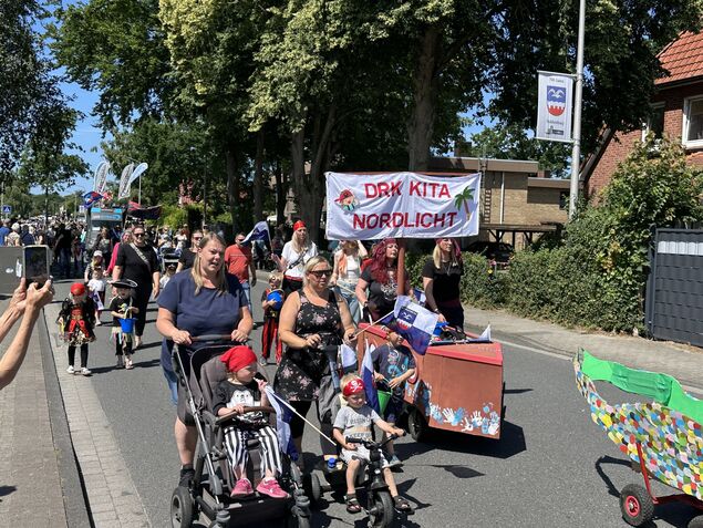 Die brauchten sich nicht lange bitten zu lassen und begrüßten mit Applaus die lokalen Gruppen, die auf Wagen oder zu Fuß dabei waren. Bunt und lustig ging es zum Beispiel bei den Sahlenburger Sportfreunden, den Sohl'nborger Büttpedders, den Grundschulkindern, den Cuxhavener Northstars, den Kitas des Stadtteils, den Junior Rangers aus dem WattBZ oder bei der Bäckerei Itjen zu. Von deren Wagen ergoss sich gelegentlich eine Erfrischung auf die Umstehenden.