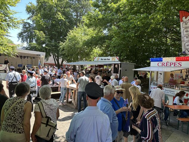 Die Gäste aus Theix kamen in Trachten und spielten - unterstützt durch den Cuxhavener Frank Hohmeister - die Europahymne (= die Ode an die Freude) auf der Bombarde, einem bretonischen Blasinstrument. Ein Titel, perfekt passend zu diesem Wochenende.