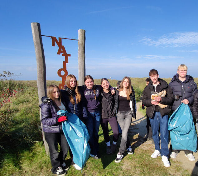 Bei der Theorie sollte es aber gar nicht bleiben. Ganz handfest brachten die Organisatoren die erforderliche Ausrüstung mit, damit sich alle im Anschluss mit Mülltüten etc. versorgen und am Strand und an Land ausschwärmen konnten, um Müll zu sammeln. Im Bewusstsein für diesen Zusammenhang und mit der Erkenntnis, dass wir alle jeden Tag zur Umweltverbesserung beitragen können, legten die Jugendlichen hochmotiviert in Sahlenburg los, um ihren kleinen Beitrag zu leisten. Solche sogenannten "Clean-ups" hatten zuvor schon in Italien und in den USA stattgefunden, jetzt waren sie in Cuxhaven angekommen - das Meer direkt vor der Tür und somit sehr anschaulich.