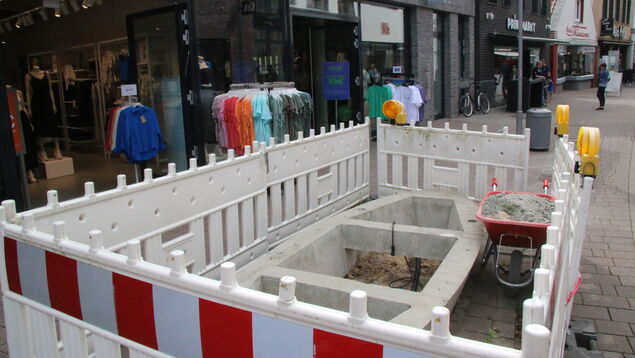 Das Areal um die "Hermine" wurde deshalb mit Kunststoffzäunen und rot-weißem Flatterband abgesperrt. Eine Handvoll Arbeiter nahm danach einen Teil des Kopfsteinpflasters am Fuße des Schiffes auf und entfernte mehrere Meter Gras vom Rand der wellenförmigen Platzeinfassungen. Später wurden die Kabel für die neuen Beleuchtungsanlagen verlegt.