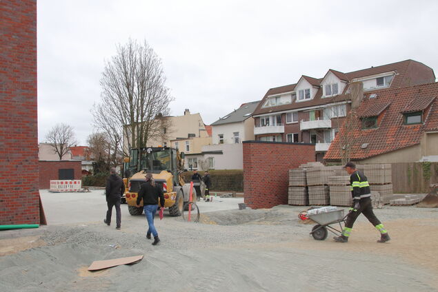 Dieser Schritt allerdings ist noch Zukunftsmusik; bei einem Lokaltermin, der am Mittwoch an der Werner-Kammann-Straße stattfand, ging es vor allem um den Fortschritt bei den Neubauarbeiten, die im Jahr 2023 auf der an das bisherige Inspektionsgebäude angrenzenden Gaswerksbrache begonnen wurden. Dort ist inzwischen "in realiter" zu besichtigen, was man zuvor nur von den Architektenzeichnungen her kannte: Der "L"- förmige Baukörper, der zur Straßenseite hin vier Geschosse hoch ist, hat von außen betrachtet bereits den endgültigen Zustand erreicht; Fenster oder die Eingangstür, durch die Besucher das neue Polizeigebäude betreten werden, wurden bereits eingesetzt. Der Außenbereich wurde weitestgehend befestigt - was hier noch fehlt ist die Zaunanlage und das Finetuning. "Wir haben hier jetzt erst einmal durchgepflastert", erläuterte Projektleiter Lorenz Tettenborn (Staatliches Baumanagement Elbe-Weser) im Rahmen der jüngsten Begehung. Sobald die eingangs erwähnten Container nicht mehr benötigt würden, wolle man einige Bäume pflanzen und Sitzinseln anlegen.