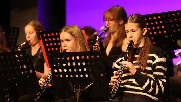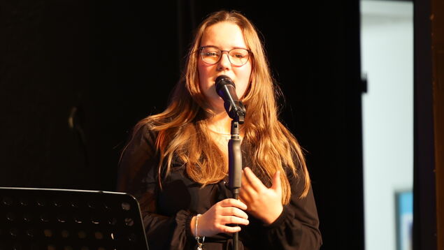 Obwohl die jungen Schülerinnen und Schüler aus Nordholz als erstes auf die Bühne mussten, trotzten sie dem Lampenfieber. Souverän und mit Unterstützung des "Sunset Chords Junior" gaben sie zwei Kanons zum Besten. Anschließend baute sich das Amandus Orchester auf und spielte bekannte Stücke wie "My heart will go on" aus dem Film Titanic oder "Skyfall" aus dem gleichnamigen James-Bond-Film. Beide Stücke wurden von Solistin Leonie Weiland gesanglich begleitet.