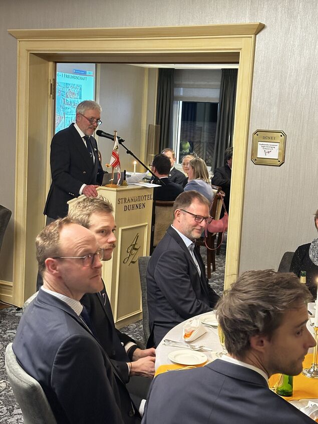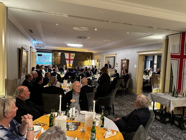 Der Saal war voll bei der Traditionsveranstaltung im Strandhotel Duhnen, die wie immer Angela und Thomas Cords vorbereitet hatten. Auf den Tisch kam wie in der Seefahrt üblich ein fernöstlich gewürztes Hähnchencurry mit zahlreichen pikanten Zugaben.