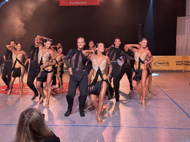 Strahlende Gesichter erzeugte der Finalauftritt des A-Lateinteams der TSG Bremerhaven nicht nur auf den Rängen, sondern auch bei seinem dreiköpfigen Trainerteam. In einer Woche wird es genau hiermit bei der Deutschen Meisterschaft um Gold gehen. Gutes Omen: Vorherige Auftritte in Cuxhaven sollen der Formation bislang immer Glück gebracht haben.
