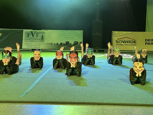 Spaß, Freude und Talent demonstrierten auch die jungen Bodenturnerinnen des ATSC als kleine Tabaluga-Drachen und ihre älteren Vorbilder aus den ATSC-Wettkampfgruppen mit einer rasanten Turnshow voller Flickflacks und Salti auf dem Airtrack (einer luftgefüllten langen Turnmatte) im ABBA-Style.