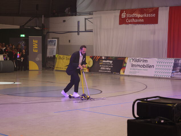 Thorsten Döscher, Vorsitzender des Vereins "Sport in Cuxhaven", begrüßte in der ausverkauften Halle als Teil der 1200 Zuschauer auch Oberbürgermeister Uwe Santjer und den Bundestagsabgeordneten Christoph Frauenpreiß, bevor Moderator Kristian Klement das Parkett für Sabine Lenz-Breuer und ihre Tanz- und Sportgymnastik-Gruppen aus dem ATSC freigab.