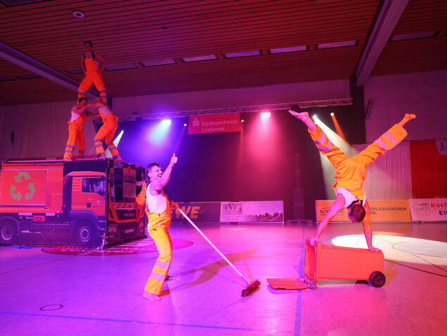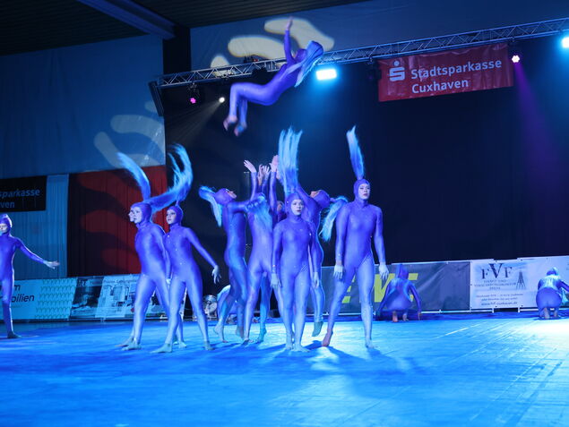 Dank der glänzend ausgewählten Showacts aus dem Spitzensport bekam das Publikum Weltmeister, Artistik- und Zirkusfestival-Preisträger zu sehen. So wie das Duo Sienna: Mehr als eine Poledance-Stange, Athletik und Präzision bis in die Fußspitzen brauchten die beiden Profi-Artistinnen nicht, um das Publikum hinzureißen. Die Showgruppe "New Power Generation" aus Oldenburg präsentierte in futuristischen Kostümen und mit aus ihren Kapuzen ragenden Pferdeschwänzen ihre Kür "Unter Wasser", mit der sie in diesem Jahr den Titel bei der Showtanz-Weltmeisterschaft in Lissabon geholt hatten.