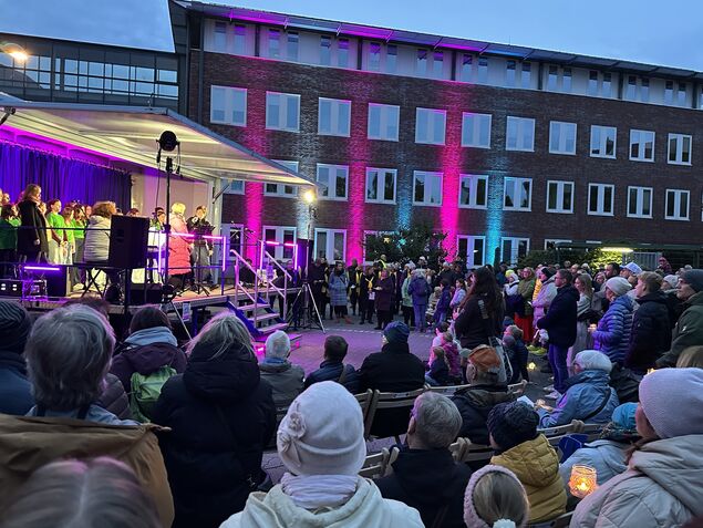 Mehrere Hundert Cuxhavenerinnen und Cuxhavener hatten sich auf dem Rathaus-Innenhof versammelt, um gemeinsam Lieder zu singen, die glücklich, aber auch nachdenklich machten - vor allem aber Gemeinschaftssinn und Identität stifteten.