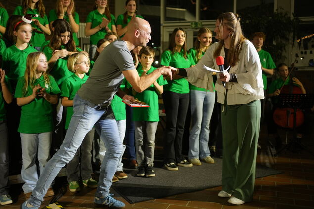 Für besondere Momente sorgte der Schulchor LiG-Harmonics unter der Leitung von Sabine Rönnfeld. Mit dem eindrucksvollen Stück "Adiemus", das in einer Fantasiesprache gesungen wird, zeigte der junge Chor nicht nur Konzentration, sondern zog das Publikum auch klanglich in seinen Bann. Der Chor präsentierte sich auch in neuem Outfit, nachdem Matthias Beran von Cux-Sport neue Polo-Shirts für alle Sängerinnen und Sänger gespendet hatte.
