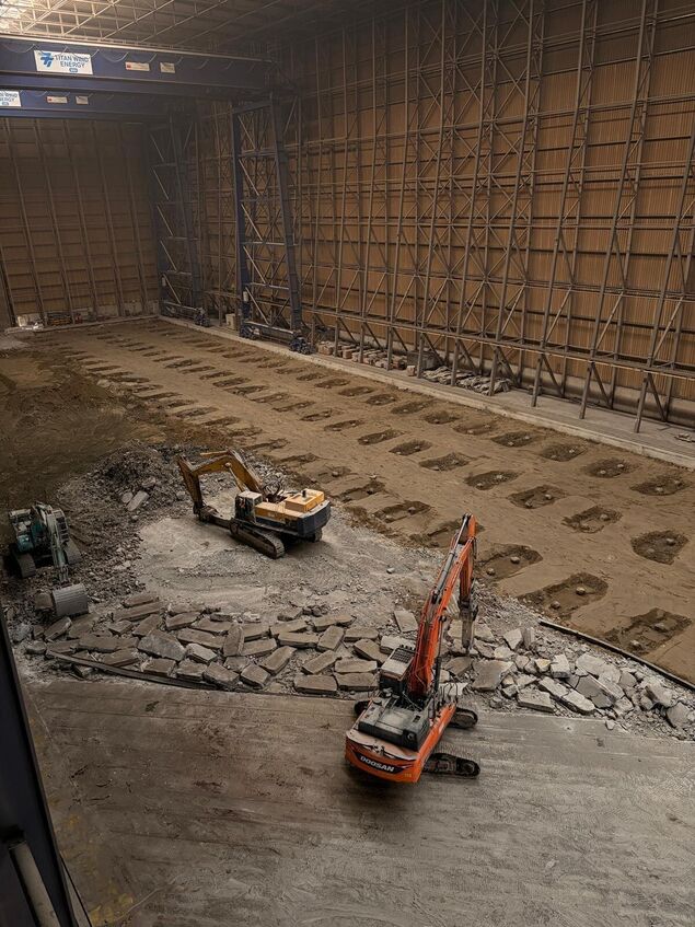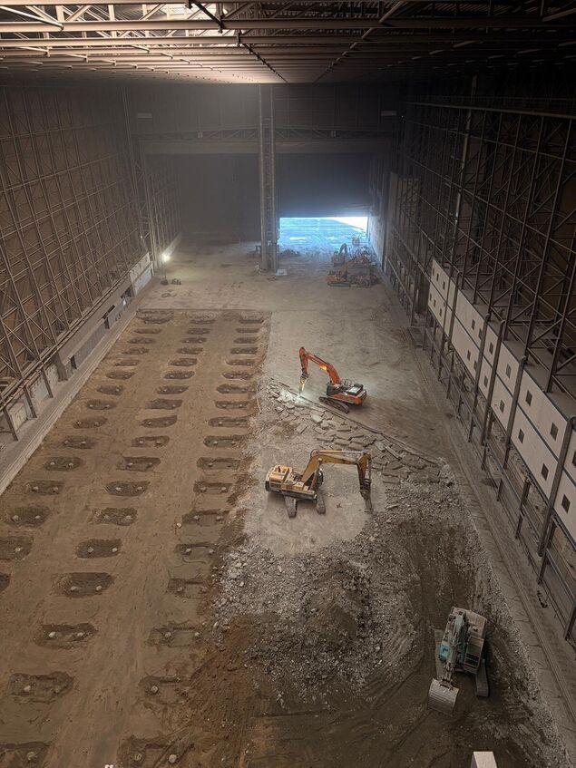 Im Cuxhavener Hafen wächst ein Industrieprojekt heran, das die Region nachhaltig prägen wird - und das jeden Tag sichtbarer, hörbarer, greifbarer wird. Aus der markanten blauen Halle dringt ein tiefes Grummeln nach draußen: Maschinen laufen im Dauereinsatz, alter Beton und Stahl wird gebrochen und bewegt, neue Strukturen nehmen Form an.