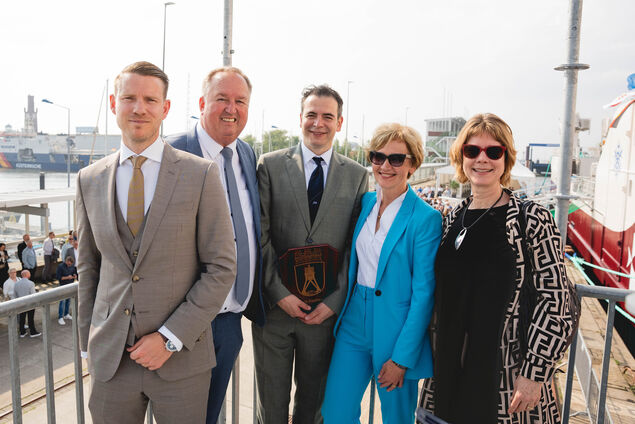 Zu Beginn wagte der Geschäftsführer eine Zeitreise in die über 100-jährige Tradition der DFFU in Cuxhaven. Nach 2018 begehen wir nun die zweite Tauffeier in nur sechs Jahren in Cuxhaven", sagte er. Damit habe die DFFU in dieser Zeit weit über 100 Millionen Euro am Standort Cuxhaven investiert. "Die Unternehmenserfolge sind nicht abgeflossen, sondern wurden von den Gesellschaftern wieder in das Unternehmen investiert." Diese Investitionen seien ein klares Bekenntnis der DFFU sowie der Alda-Gruppe zum Stammsitz und Standort Cuxhaven und ein weiterer Grundstein für eine auch zukünftig starke Fischerei in Cuxhaven. "Wir wünschen und erhoffen uns, dass unsere politischen Vertreter hier in Stadt und Land uns neben den sehr wichtigen zukunftsträchtigen Projekten wie Windenergie, Wasserstoff und Logistik auch weiterhin da behalten und sich weiterhin für unserer Belange einsetzen", so der Geschäftsführer.