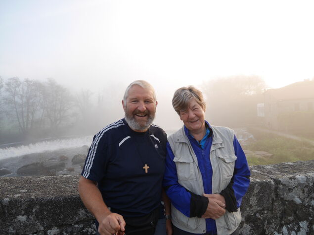 Dass auf dem von ihm selbst gefertigten Bild zwei Pilgerer zu sehen sind, hat zum einen mit dem Status der Herz-Jesu-Kirche als nördlichste Wallfahrtskirche des Bistums Hildesheim zu tun, aber auch mit seiner eigenen Pilgererfahrung: Dreimal pilgerte er auf dem Jakobsweg nach Santiago de Compostela (einmal fuhr er in weniger als zwei Monaten mit dem Fahrrad aus Cuxhaven dorthin) und einmal nach Lourdes. Aus Überzeugung: "Glauben ist kein Mumpitz", sagt er. Es lohne sich, sich die Zeit zu nehmen, um Dinge bewusst wahrzunehmen: "Da bekommt man Lösungen zugesprochen."