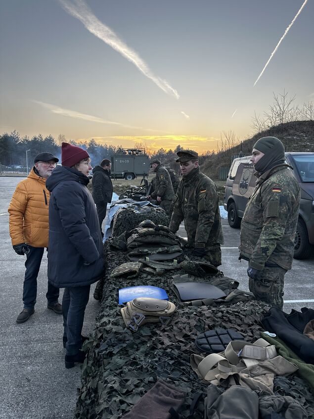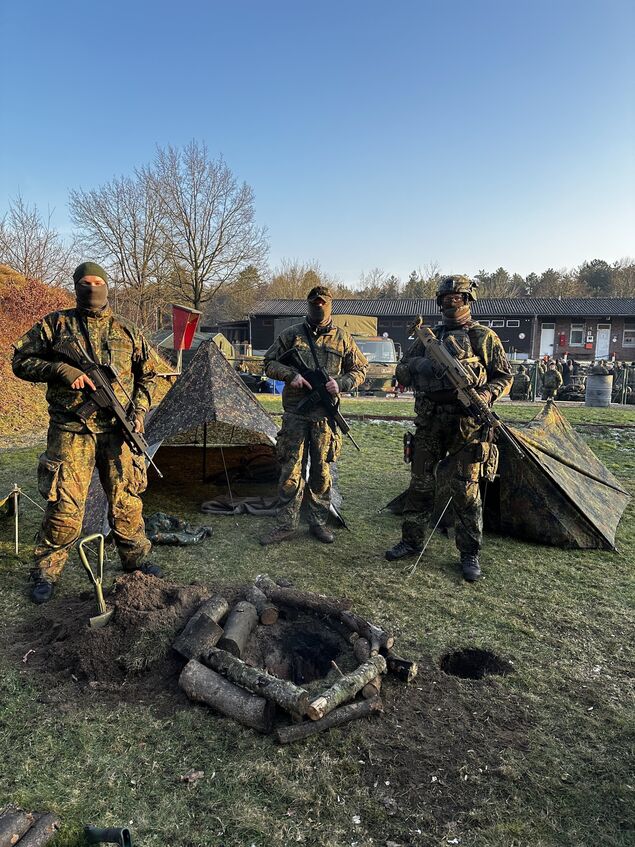 Deshalb fanden sich die Gäste umgeben von einer Szenerie, die den meisten beim Gedanken an die Marine nicht unbedingt als Erstes in den Sinn kommen würde: Tarnen und Täuschen, Leben im Felde, ein gut gesicherter Checkpoint, ABC-Abwehr und einiges mehr wurden lebendig dargestellt. Soldatinnen und Soldaten stellten an verschiedenen Stationen ihre Ausstattung dafür vor und gaben bereitwillig Auskunft. Das Ganze stellte bereits einen Vorgeschmack auf den am 6. Juni dieses Jahres in Nordholz anstehenden "Tag der Bundeswehr" dar; eine Großveranstaltung, zu der rund 60.000 Besucher erwartet werden.