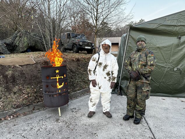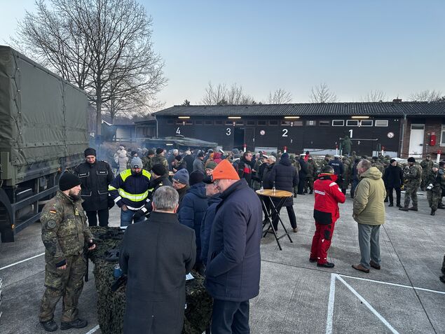 Neujahrsempfang bei den Nordholzer Marinefliegern: Viele Jahre lang bedeutete das üblicherweise gediegene Atmosphäre, Gastgeber im blauen Dienstanzug, im Hintergrund die Luftfahrzeuge des Geschwaders. Der Termin am Donnerstag hingegen unterschied sich deutlich von dieser Vorstellung - angefangen damit, dass der Empfang nicht in Nordholz stattfand, sondern an der Standortschießanlage im Altenwalder Forst.