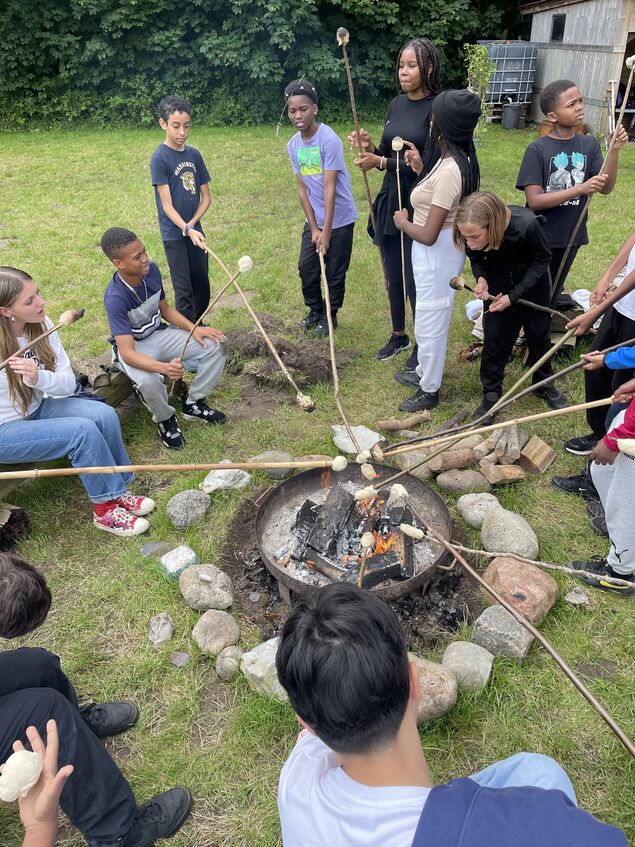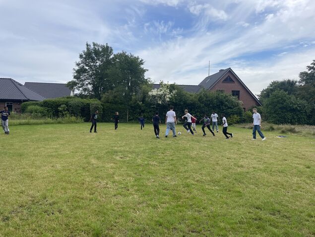 Gemeinsam mit der Klasse 9b und den Lehrkräften Heike Keuser und Martin Kliebe wurden dort die Himbeeren gepflegt und zum CO2-Ausgleich pflanzten die Jugendlichen Johannisbeersträucher. Aber natürlich kam auch der Spaß nicht zu kurz und so gab es Fußballspiele, Schubkarrenrennen und ein Picknick mit Stockbrot über dem Lagerfeuer - eine Tradition, die die Kinder aus Martinique mit nach Hause nehmen möchten.