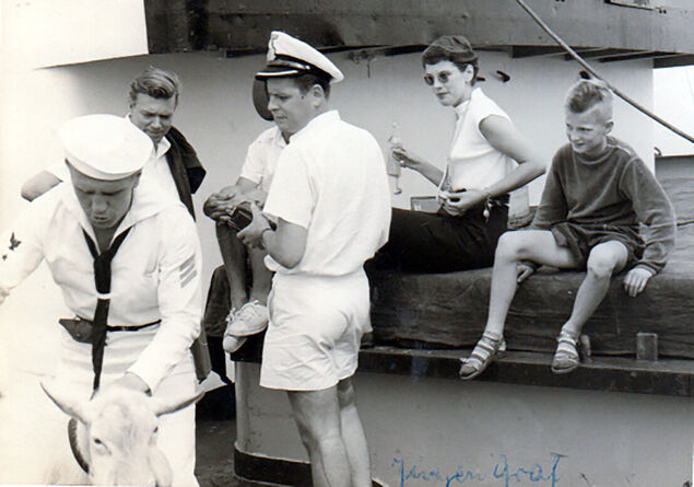 Alte Fotografien, die Mordhorst jetzt wiederentdeckt hat, zeigen die Schauspieler, Statisten und das Filmteam an Bord der "Karen Bolten". Mittendrin: der achtjährige Peter. "Ich kann mich noch erinnern, dass ein Fliegerangriff der Amerikaner gedreht wurde. Wir mussten dann alle vom Oberdeck flüchten", erzählt der Cuxhavener. Peter Mordhorst war außerdem dabei, als Szenen mit einem Ziegenbock gefilmt wurden. "Das war ein tierischer Spaß."