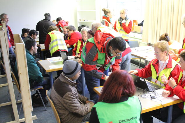 Das durch das Land mit der Trägerschaft beauftragte DRK Cuxhaven-Hadeln baute eilends ein hauptamtliches Team auf. DRK-Projektleiter Bernward Kaltegärtner rief die Katastrophenschutzorganisationen zusammen, beschaffte Betten und plante die Belegung der Räume. Versorgung, Sanitätsdienst, Sprachkurse, Hygieneartikel, Kleidung, Versorgungs- und Kommunikationsleitungen, Sicherheitsdienst: Die Liste der Aufgaben schien schier unendlich, schließlich musste eine richtige kleine Stadt aufgebaut werden.