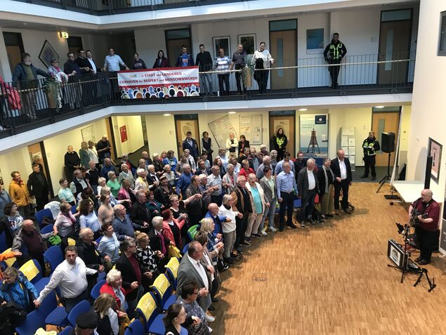 In der Bürgerhalle des Cuxhavener Rathauses wurde es bei der Feier des Grundgesetz-Geburtstags am Mittwoch eng. Das Bündnis "Cuxhaven für Respekt und Menschenwürde" hatte mit seiner Themenmischung scheinbar einen Nerv getroffen.