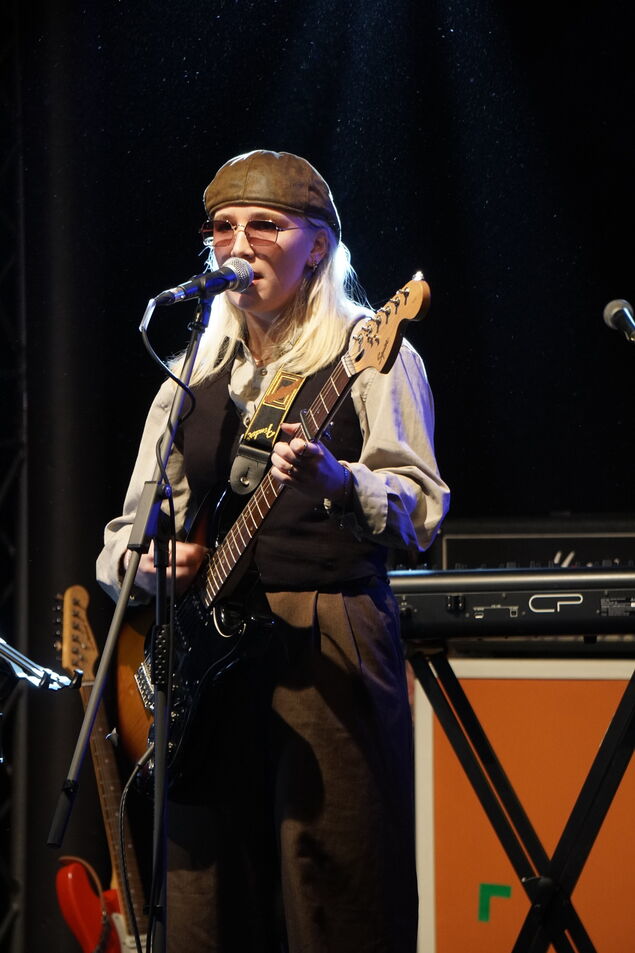 Die erste Band, die am "Local Day" auftrat, war "Catfish". Die Bandmitglieder sind rund 30 Jahre jünger als das überwiegende Publikum, das am 2. Weihnachtsfeiertag in die Hapag-Hallen kam. Rund 150 Leute befanden sich vor der Bühne und an Stehtischen im Hanseaten-Saal. Graue Bärte neben Pailletten-Oberteilen, Bier neben Wildberry Lillet. "Jetzt muss gemosht werden", verkündet Sänger und Gitarrist Tim Philipp Neuer. Das Publikum wippt mehr im Takt, als dass es "headbangt". Die vierköpfige Band aus Cuxhaven, die sich Ende 2023 gegründet hat, spielte ihre eigenen Songs, die in Richtung Indie-Rock/Pop gehen. Weitere Bandmitglieder sind die Sängerin, Gitarristin und Pianistin Jolina Schmarje, Bassistin Jasmin Dröge und Schlagzeugerin Anna Harnisch. Gemeinsam leben sie in der Musik ihre große Begeisterung für den Sound der 70er und 80er Jahre aus.