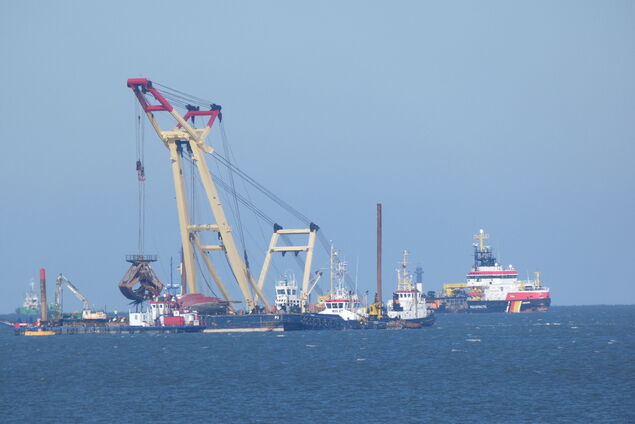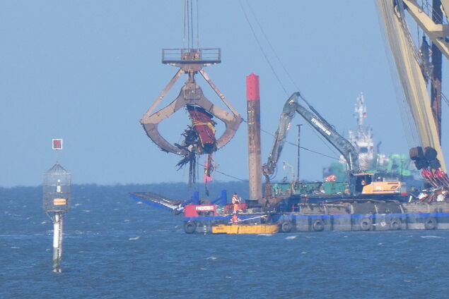 Wrackbergung vor Cuxhaven: "Ethel von Brixham" liegt in Trümmern auf Schwimmkran
