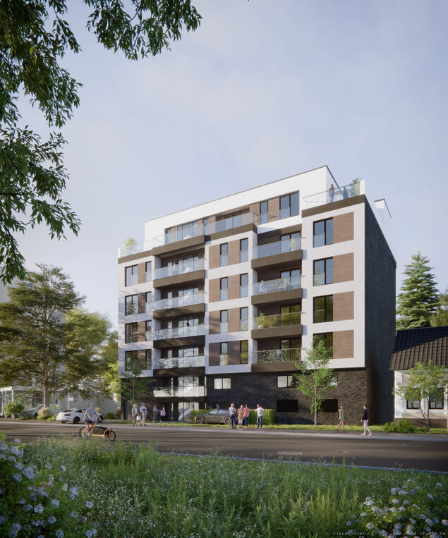 Was hat sich konkret geändert? "Wir haben das Projekt an den Bebauungsplan angepasst", erklärt Lukas Stadler vom Investor gegenüber cnv-medien.de. Das oberste Geschoss, das ursprünglich als großzügige Penthouse-Wohnung geplant war, entfällt. Zudem werden die Stellplätze nicht mehr ausschließlich innerhalb des Gebäudes untergebracht, sondern zum Teil in begrünten Carports auf dem rückwärtigen Grundstücksteil. "Das Dach der Carports bekommt eine intensive Begrünung, das Hausdach eine Photovoltaikanlage", so Stadler.