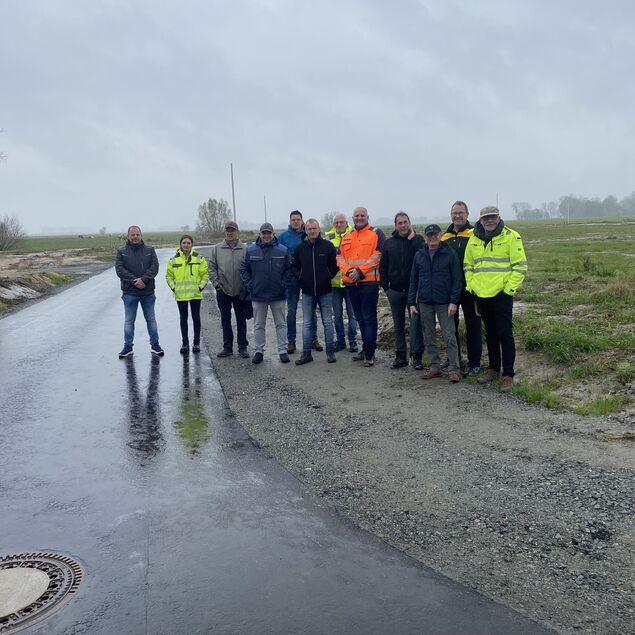 Das Ingenieurbüro Contur, Firma Matthäi, Wasserverband Wingst, Bauamt der Samtgemeinde Land Hadeln, Mitglieder des Bau-, Umwelt- und Wegeausschusses sowie Bürgermeister Wolfgang Heß und Gemeindedirektor Frank Thielebeule kamen kürzlich zur Abnahme des Baugebietes vor Ort zusammen.