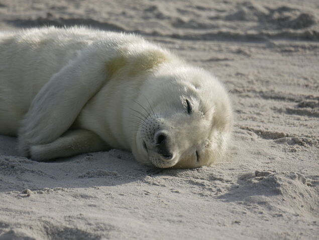 Entlang eines Wintererlebnispfades mit besonderen Aussichtspunkten können Gäste in den Wintermonaten die Düne und den Wurfplatz der Kegelrobben erkunden. 30 Meter Abstand sollen verhindern, dass die Tiere gestresst werden. Jungtiere haben ein weißes Lanugofell, das relativ lang und nicht wasserabweisend ist. Das Wollfell wärmt die kleinen Robben an Land, saugt sich im Wasser jedoch schnell voll. Es erschwert den Tieren das Schwimmen und auch die Wärmeisolation ist dann nicht mehr gegeben. (dpa)